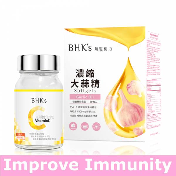 BHK's Garlic Oil+ Vitamin C Double Layer (Health Combo)【Improve Immunity】 Immunity Boosting Superstar BHK's Garlic Oil【Cold Prevention】 Description: *Garlic contains high nutrient value and boost your immune system *Allicin: the...