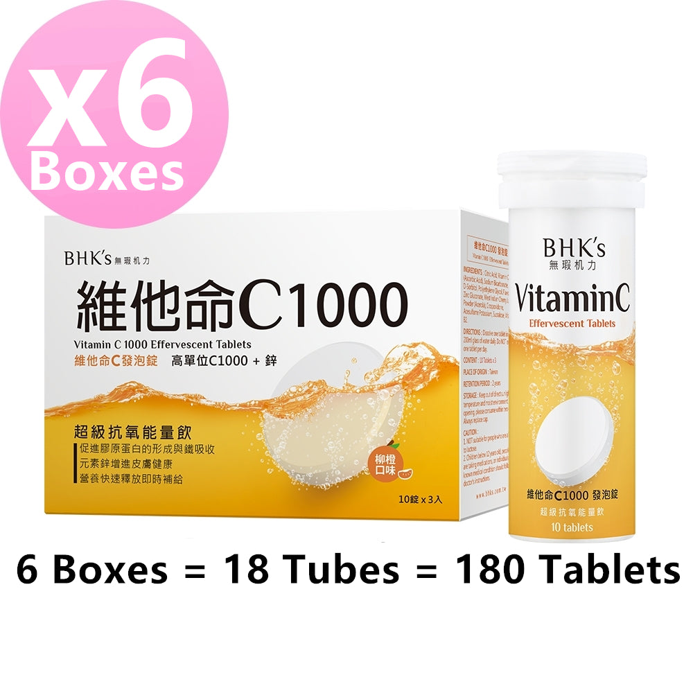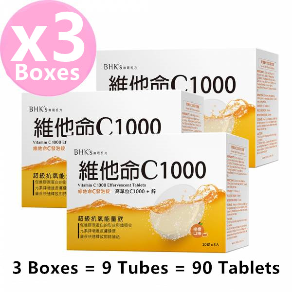 BHK's Vitamin C 1000 + Zinc Effervescent Tablets 3 Tubes/Box (30 Tablets) ⭐ 維他命C1000 發泡錠